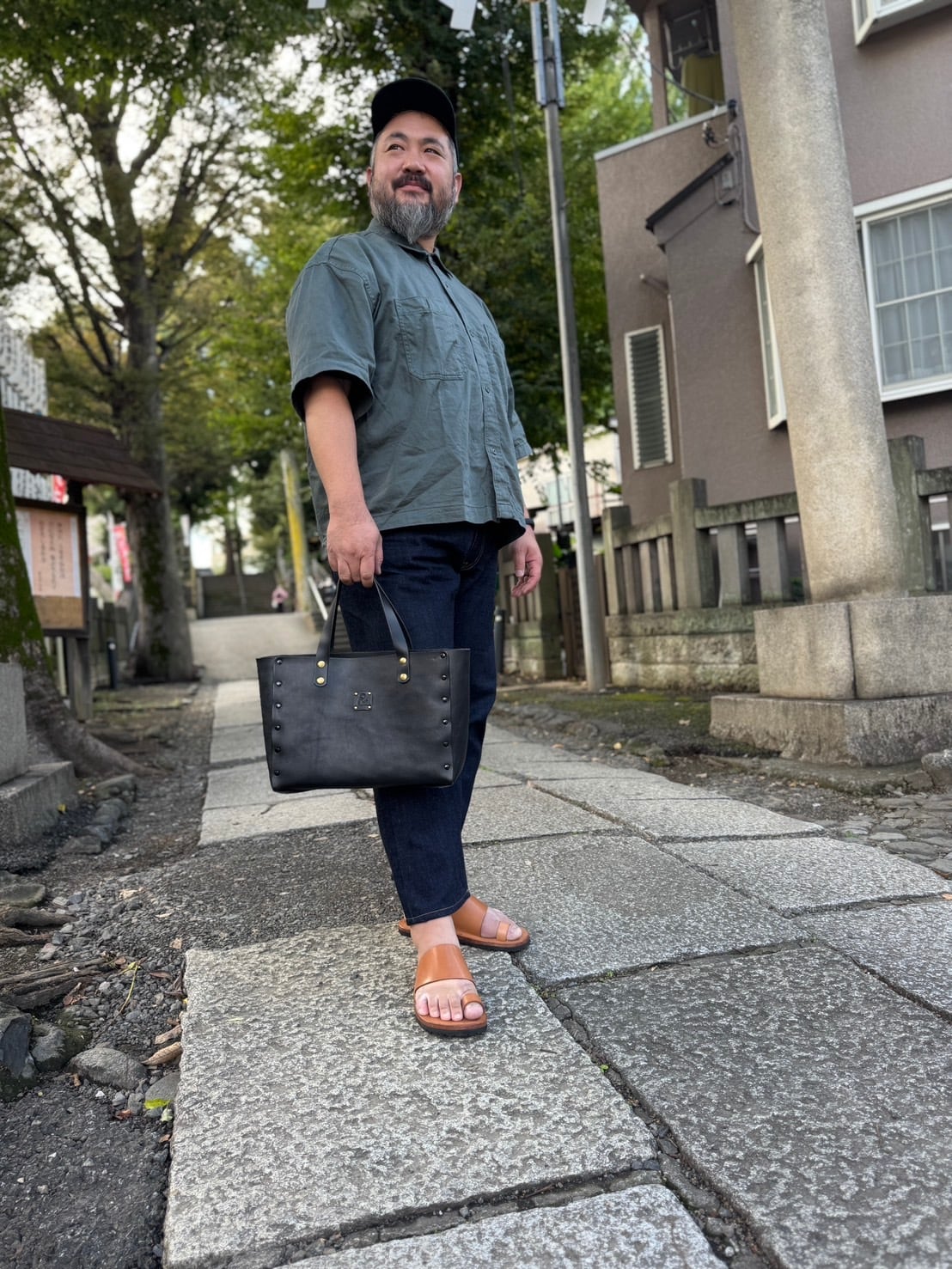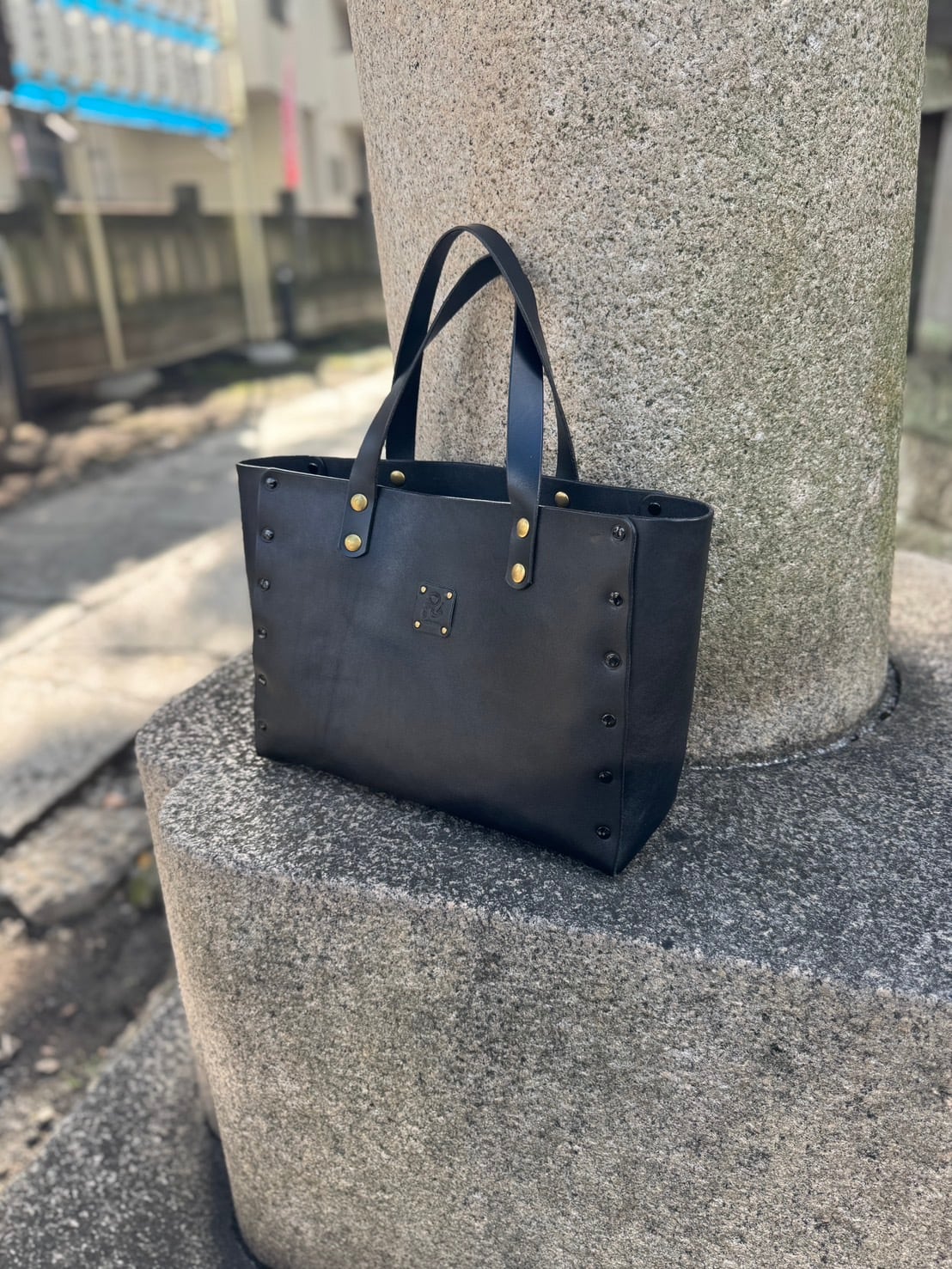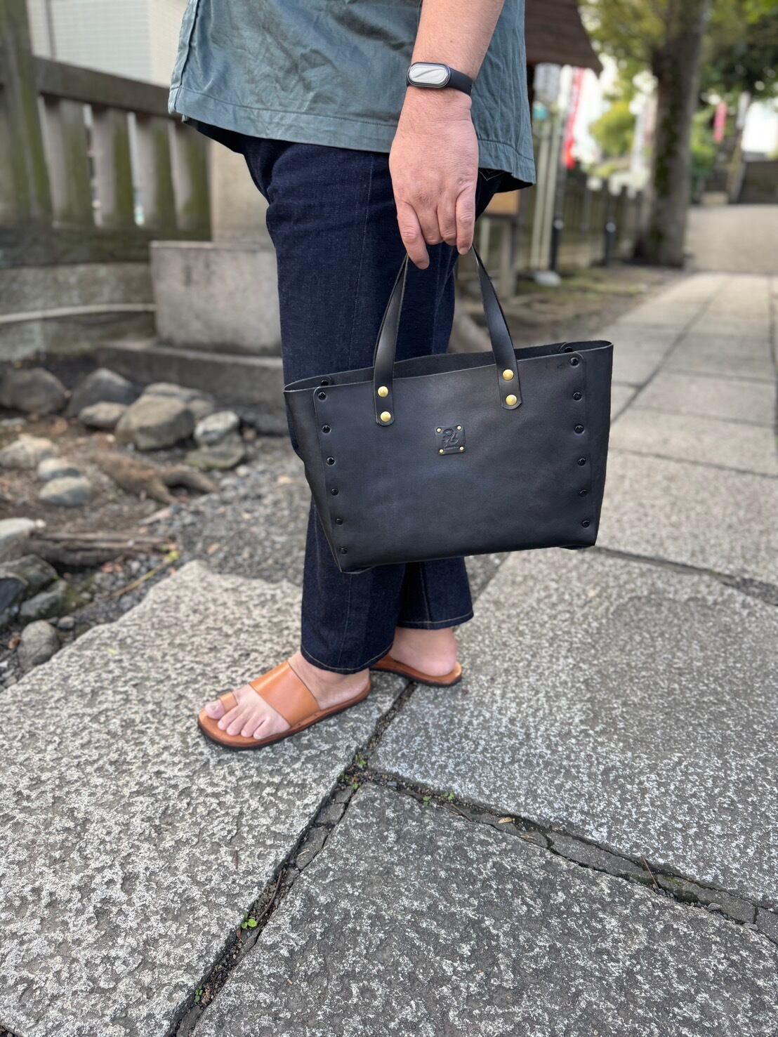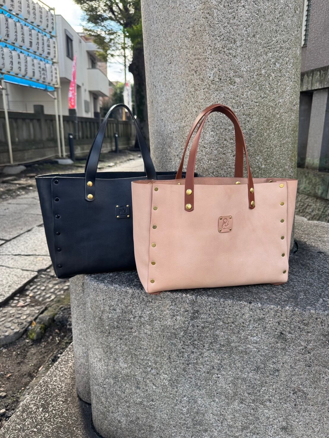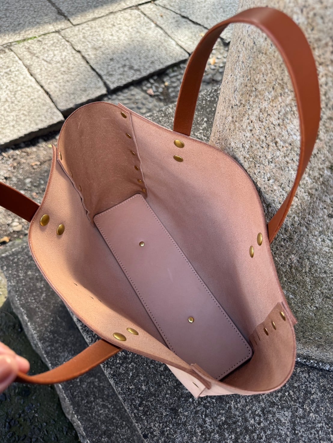 控えめな美しさの中に確かな存在感を宿すこのトートバッグは、栃木レザーのナチュラルな質感と、真鍮リベットの温かい輝きが調和した一品です。